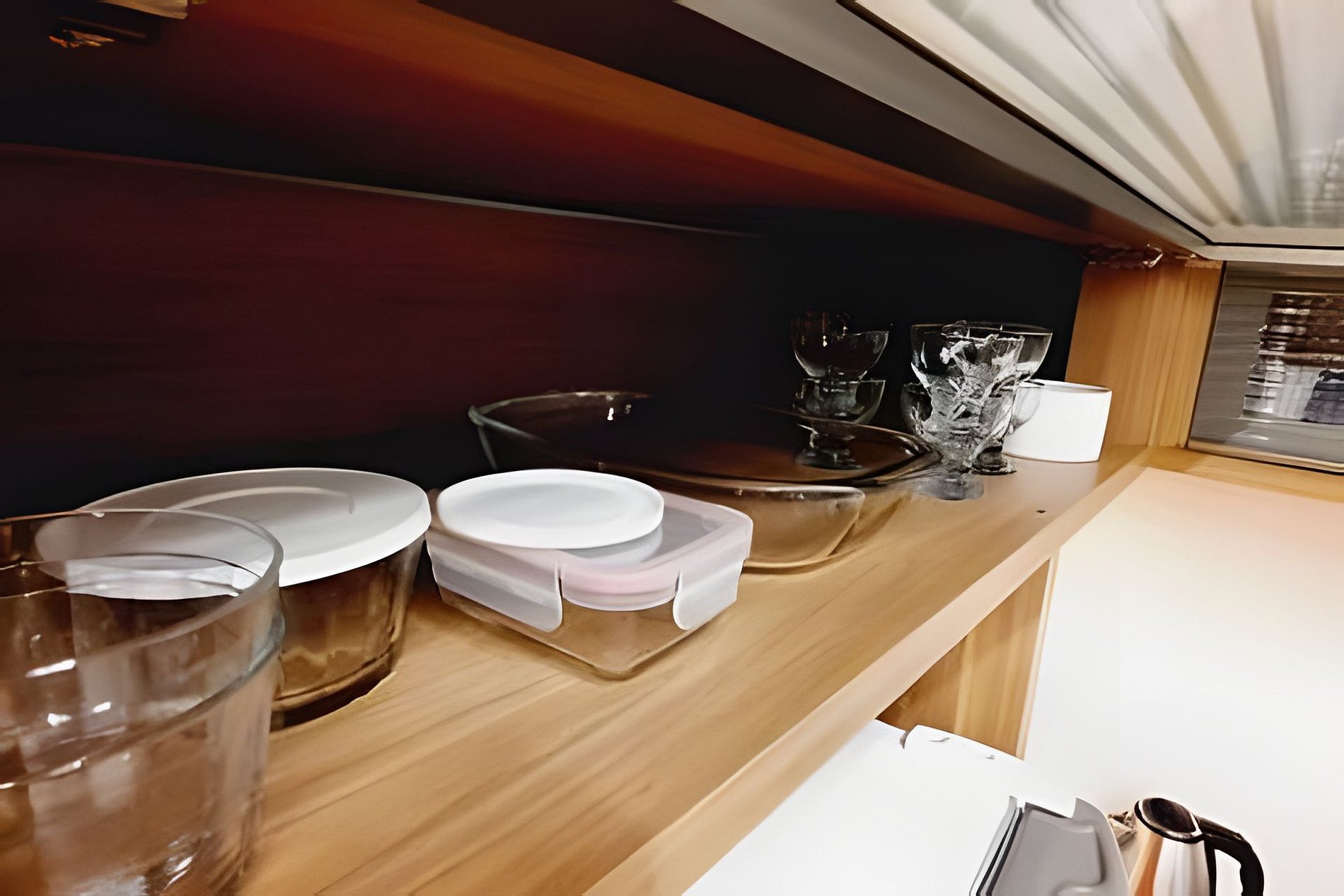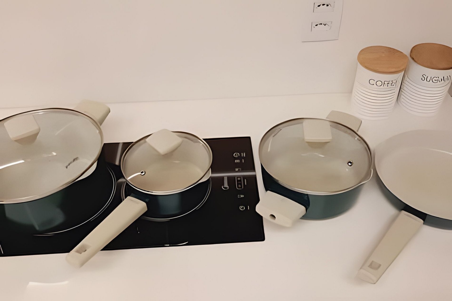 - A cozinha conta com chaleira elétrica, cafeteira, micro-ondas, geladeira, forno e louças.