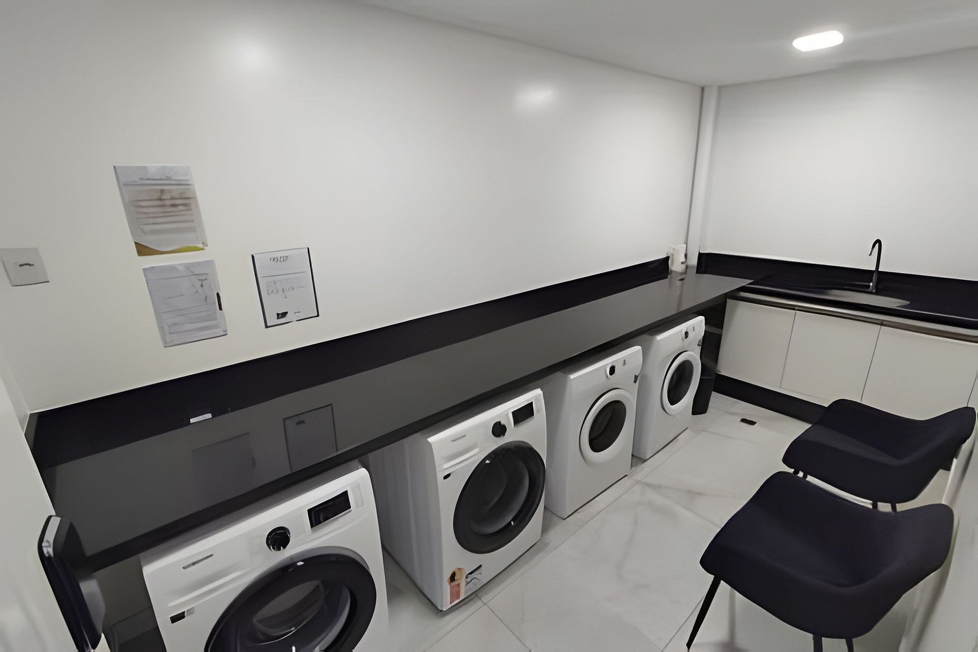 - Lavanderia do condomínio: Uso liberado, porém não dispomos de produtos para lavagem de roupas. Utilizar apenas produtos indicados, líquidos para não danificar o equipamentos. Em caso de avaria, será cobrado do hospede, ambiente monitorado por câmeras.